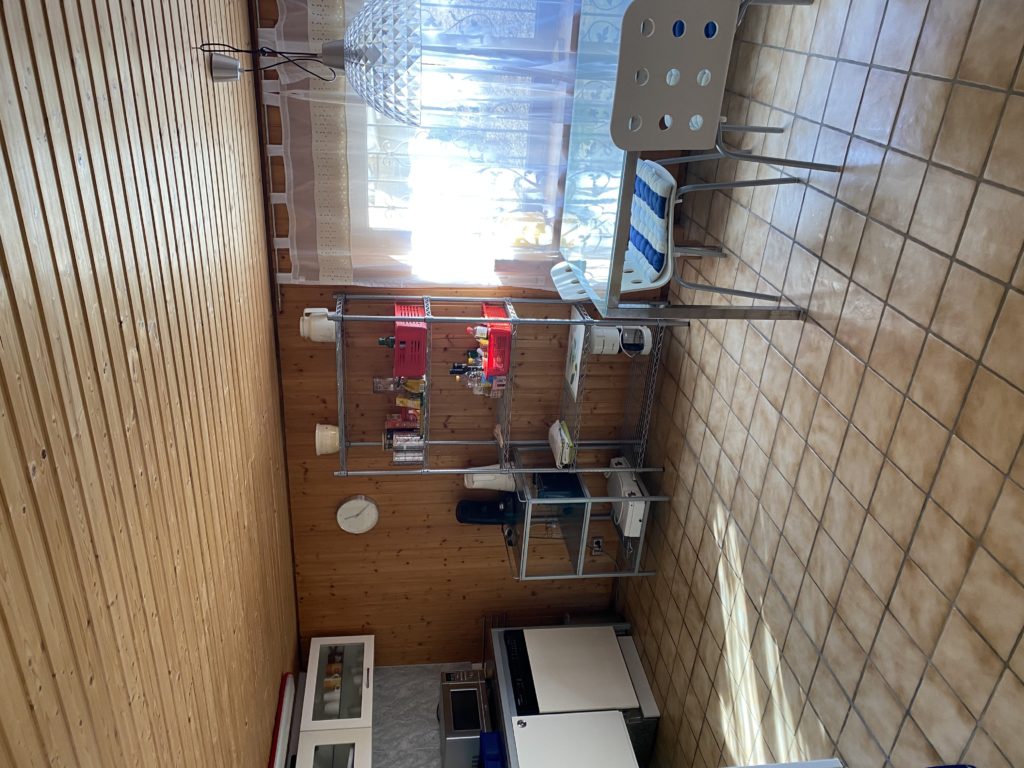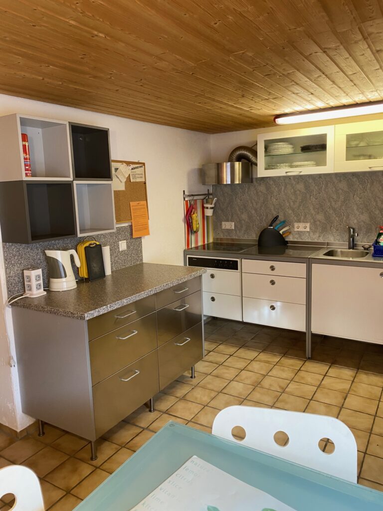 Wohnküche (Cerankochfeld, Spülmaschine, großer Kühlschrank, Mikrowelle, Senseo-Kaffeemaschine)