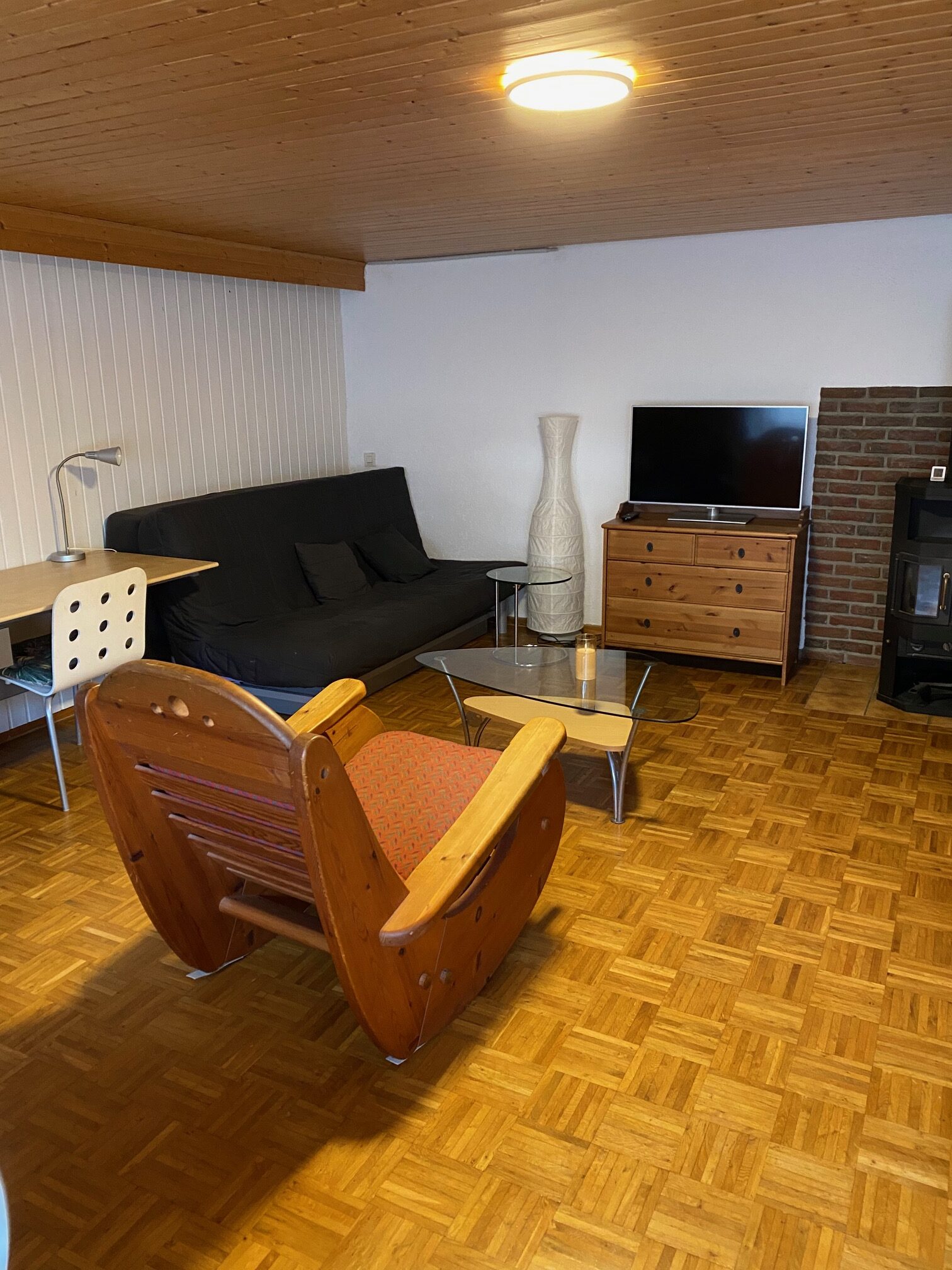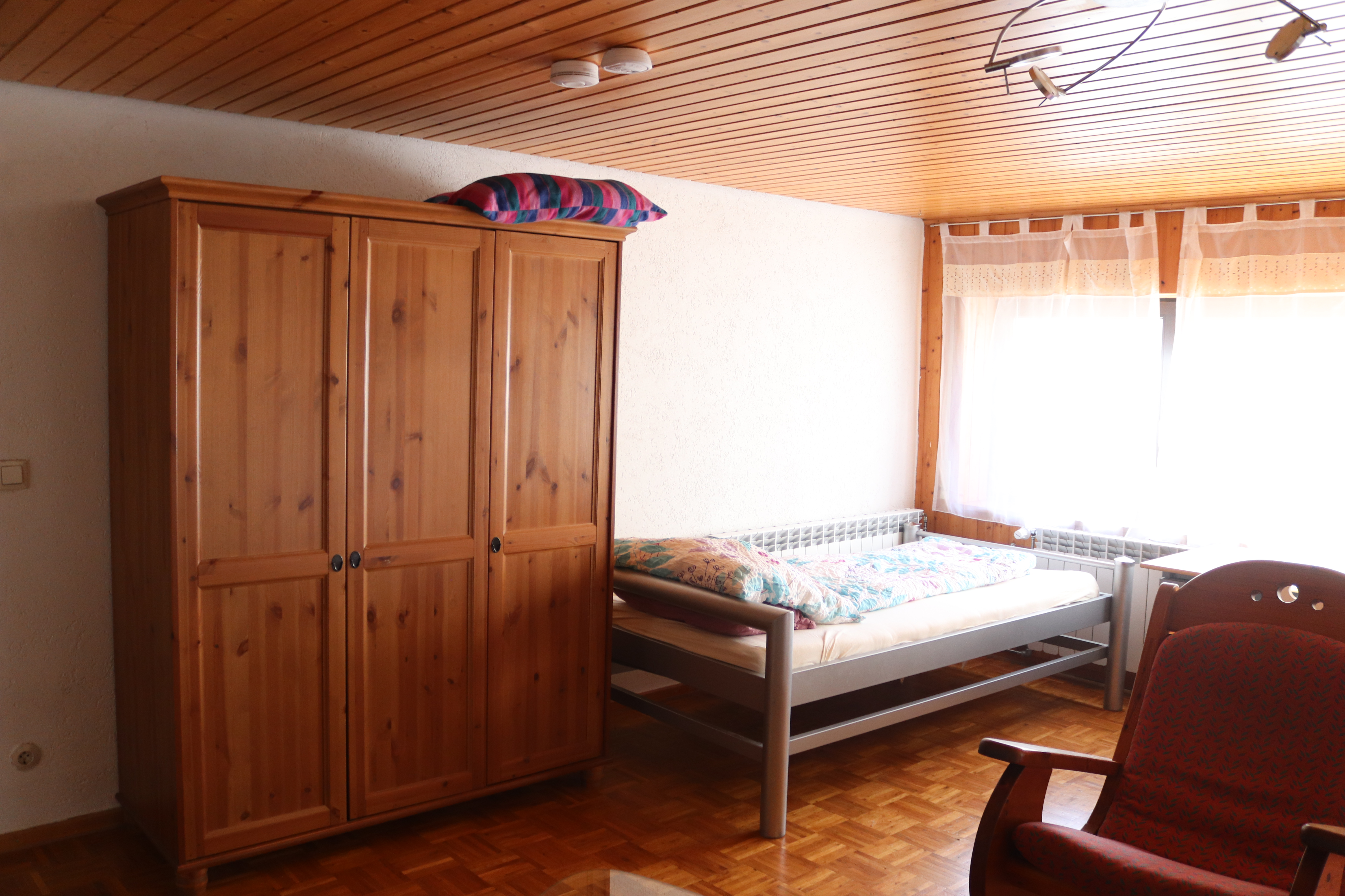 Wohn-/Schlafzimmer (2 Ikea-Schlafsofas, 1 Bett, 2 Schreibtische, Fernseher, Kommode, Kleiderschrank)